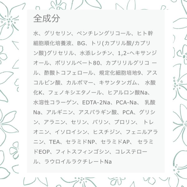 ヒアルロン酸、水溶性ナノ化コラーゲン、11種類のアミノ酸、セラミド3、6、9を配合。